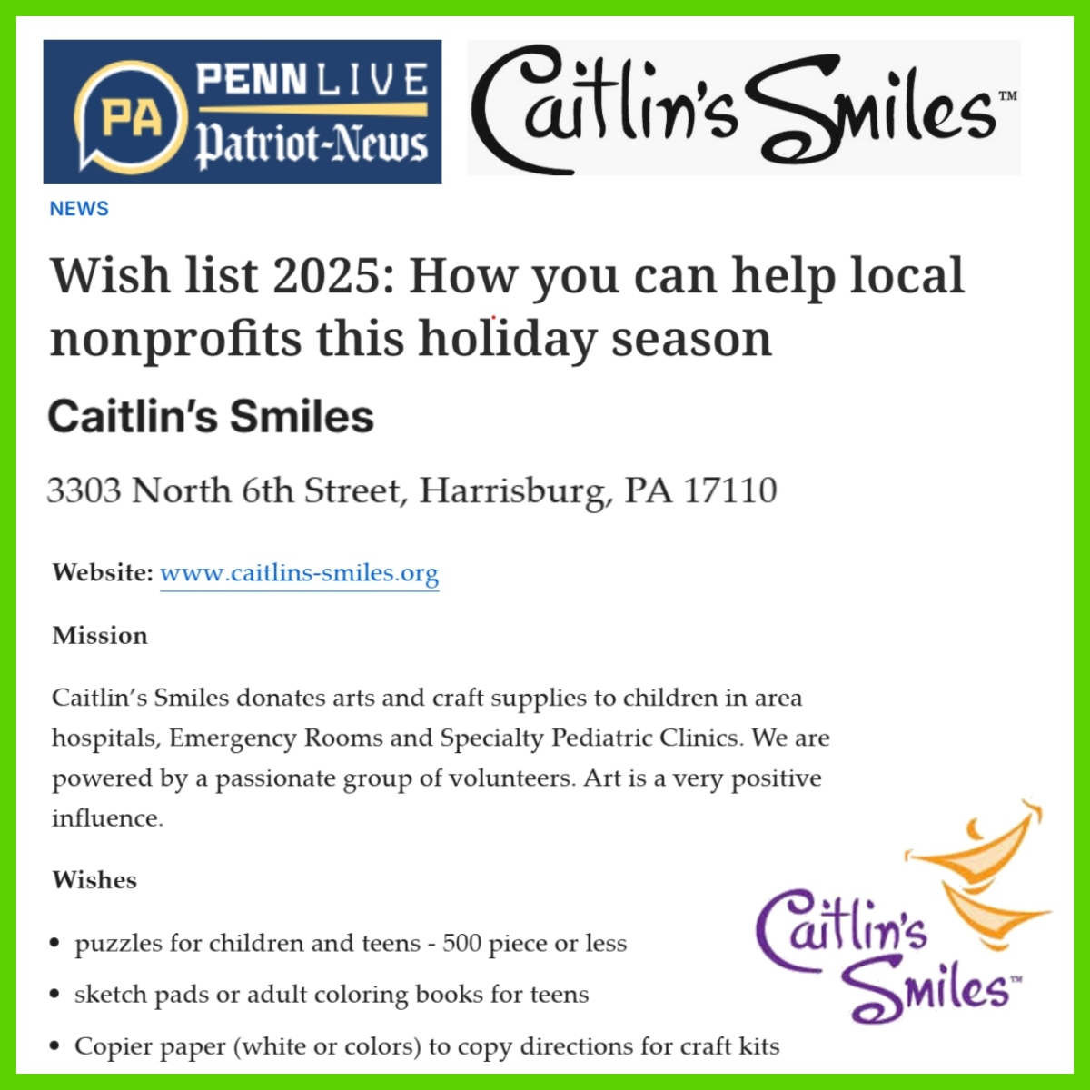 Volunteers will create greeting cards, decorate gift bags and assemble craft kits. Each session has a limited number of spaces for volunteers.