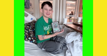 Hi! Our 11-yr old was admitted to York Hospital on 6/5 until 6/6 and then admitted back again on 6/8 until 6/10 for appendicitis/surgery and received two of your bags. We really appreciate the kind gesture! The fidgets & activities were helpful to him! This pic is when he got home with his bag after the first overnight hospital stay…before he ended up readmitted days 2 days and having surgery. Thanks again!!!